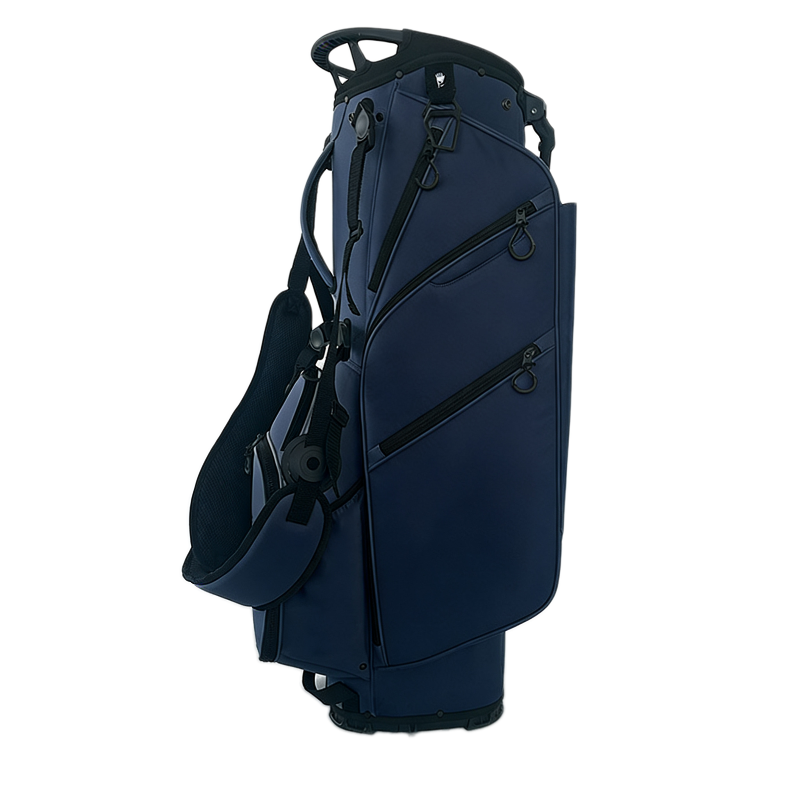 Custom Navy Blue 4 Way Nylon Golf Stand Bag – 4-way dividers, durable nylon, foldable stand, bulk customization support. Multiple spacious compartments (accessory pockets, valuables pocket), adjustable padded shoulder strap, non-slip bottom, suitable for all golfers, ideal for bulk orders and daily use. Flexible minimum order quantity to meet different custom client needs (small batch trial order available), professional production team ensures on-time delivery, guarantee your supply schedule. Factory direct price, ideal for B2B wholesale, corporate gifts.