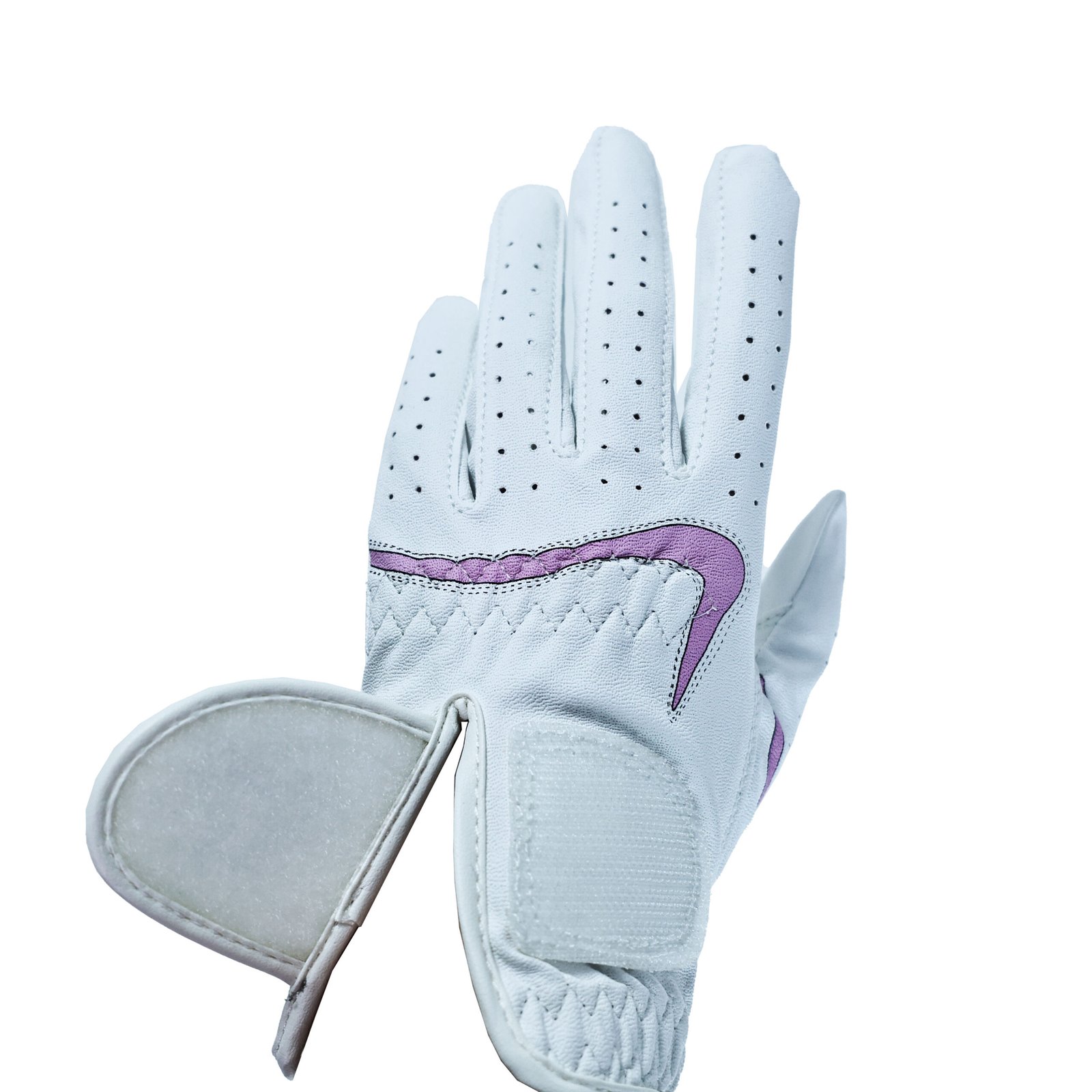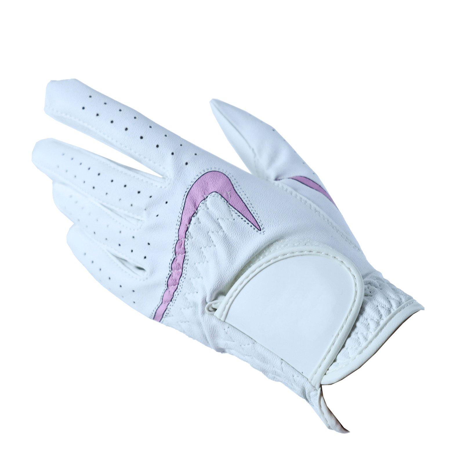 Personalised White Leather Golf Gloves Women – Premium full-grain leather gloves with custom embroidery logo, rubber logo and metal logo, sleek white design, ergonomic fit for women. Breathable, anti-slip, durable, perfect for female golfers on the course or as a gift.The opening design of the Velcro fastener makes it easier for users to put on and take off.